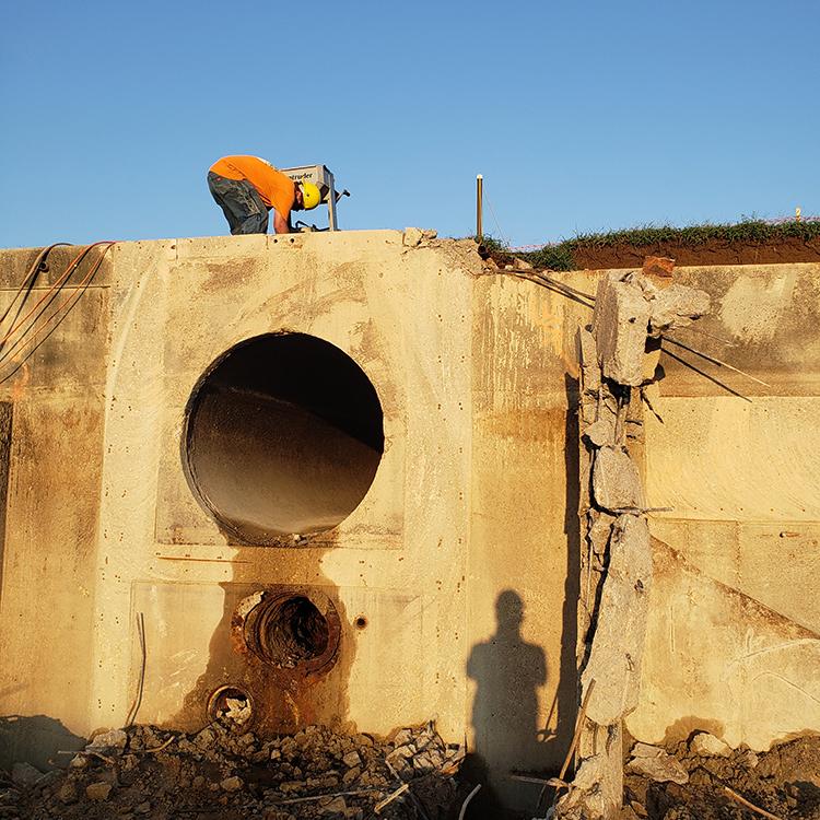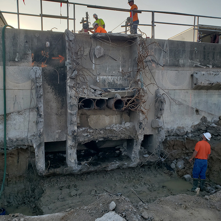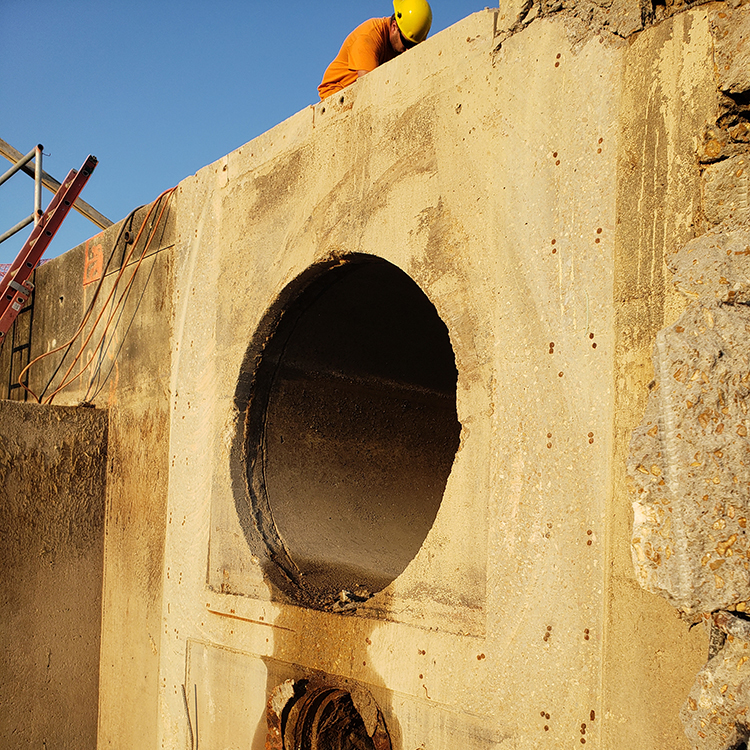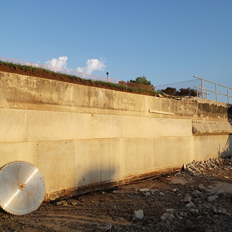 Provide clean saw cut lines along edges of clarifier channels that were being demolished.