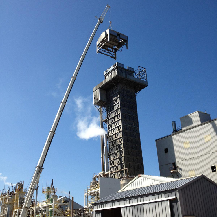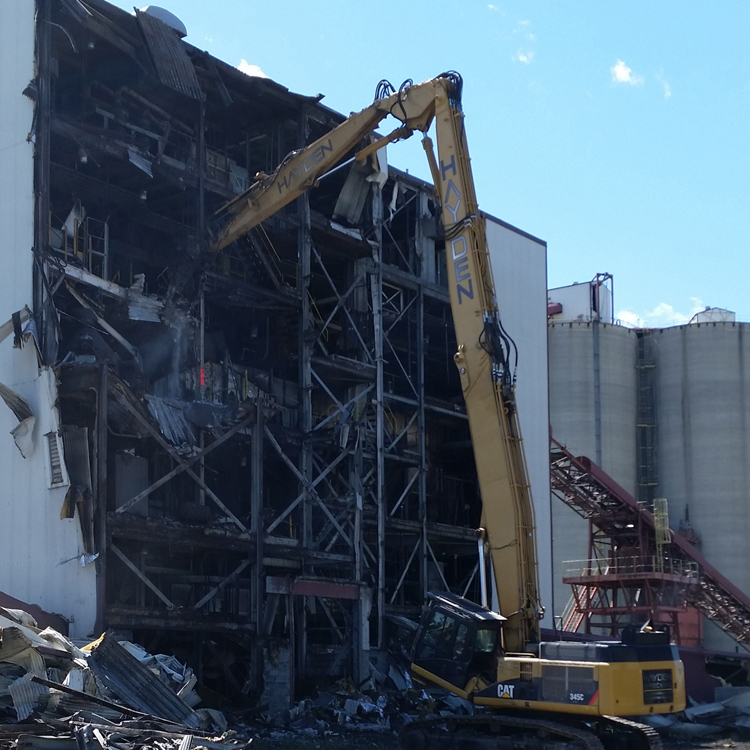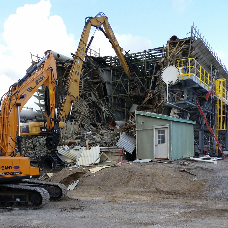 Admin2023-09-12T00:36:20+00:00Westlake Chemical contracted with Hayden Wrecking to demolish the existing 45’ x 60′ × 50’ tall 2 cell cooling tower during a department shutdown. The cooling tower was adjacent to a control room and equipment that was to remain in place. The basin for the cooling tower was to remain in place and to be left undamaged. The project schedule allowed 12 hours to complete demolition and clean up so a new cooling tower could be erected in the same foot print. Hayden Wrecking utilized an Ultra High Demolition Excavator equipped with a rotating sorting grapple to demolish the cooling tower […]