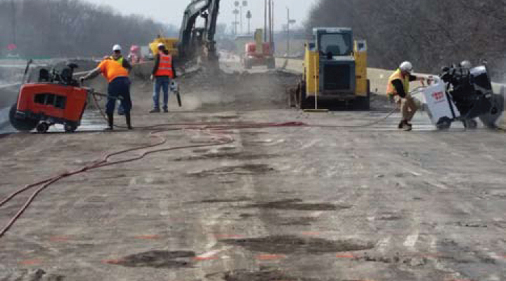Flat Sawing: (65 HP diesel): Cutting up to 17” deep pavement.